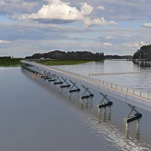 Hoe bouw je een houten brug met een lengte van 800 m? 'Dat kan eigenlijk alleen met standaard segmenten met een basismaat van 7,5 m HOH die over de hele lengte van de brug repeteert. Ze worden prefab elders gebouwd, wat op locatie zorgt voor een redelijk snelle montage. Daarbij is in de detaillering wederom gelet op afvoer van hemelwater en ventilatie van de houten delen. Gelukkig hebben we daarvoor met Wijma een partner aan boord met uitzonderlijk veel expertise op dit vlak die dezelfde taal sprak als onze constructeurs. Het 42 meter lange brugdeel over de A7 bestaat uit één deel en wordt in het najaar op een ponton vanuit Kampen aangeleverd en op zijn plek gezet.' Op welke andere manieren is invulling gegeven aan de duurzaamheidsvraag? 'Doordat hout een natuurlijk product is, is het ook een circulair product. Omdat de brug modulair is ontworpen, kunnen de materialen aan het eind van de levensduur goed worden hergebruikt. Onder de brug zijn bovendien genoeg niches waar vogels als de boerenzwaluw kunnen nestelen. Ook worden er in de nabijheid van de brug speciale nestkasten voor vleermuizen, en een wand voor oeverzwaluwen aangebracht. Een deel van de brug is beweegbaar. In een deel van het fietspad dat naar de brug toeloopt, de zogenoemde SolaRoad, is 300 m² zonnepanelen geïntegreerd die hun energie aan het net leveren en daarmee indirect ook aan de kleine elektromotor van de gebalanceerde brug zelf.''Doordat hout een natuurlijk product is, is het ook een circulair product'