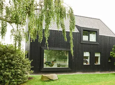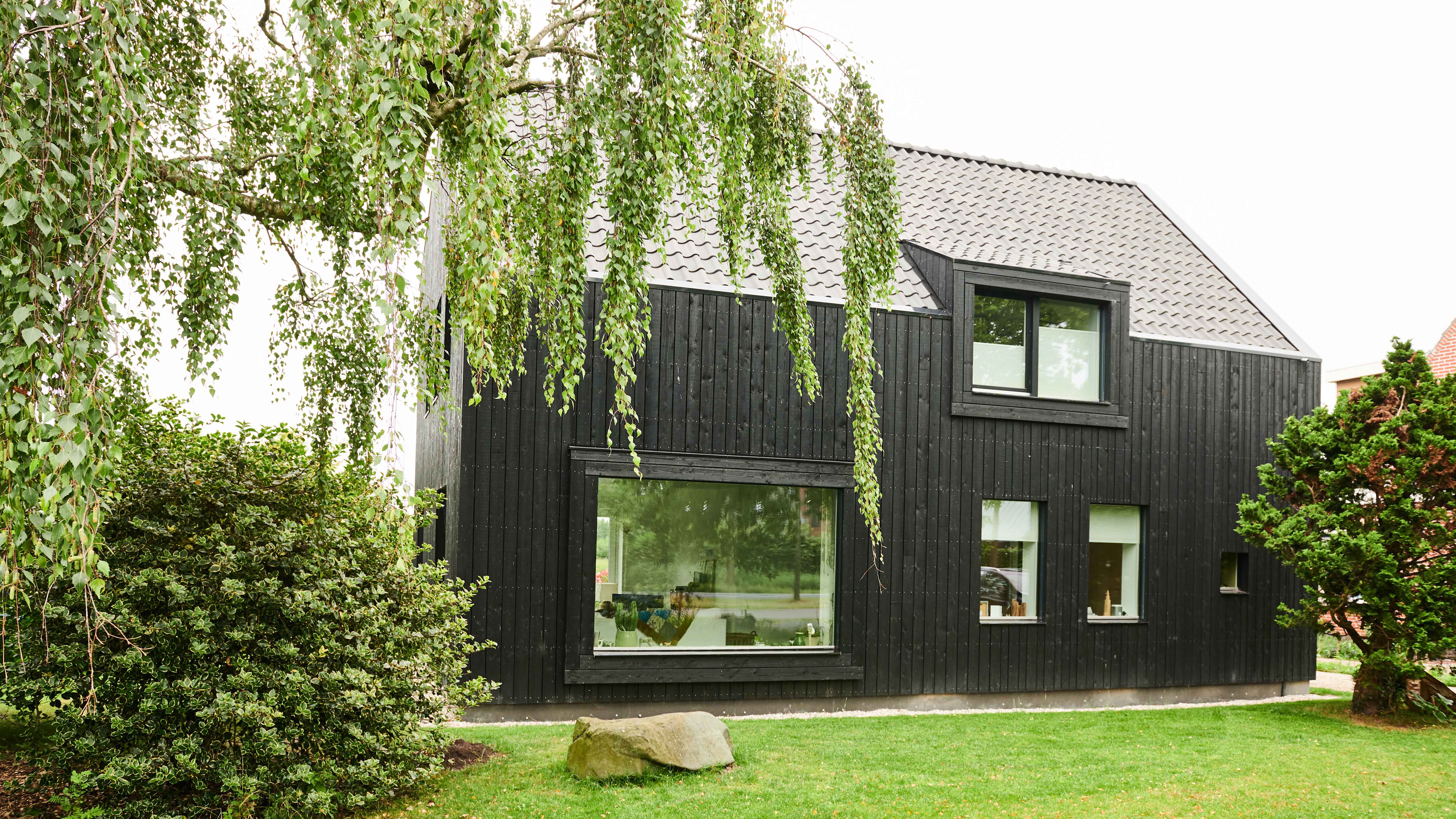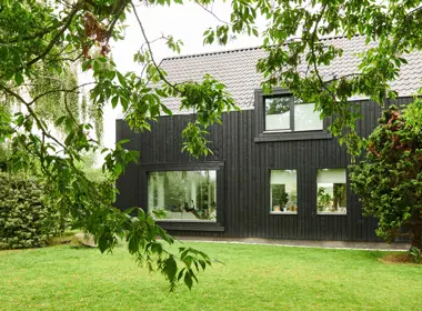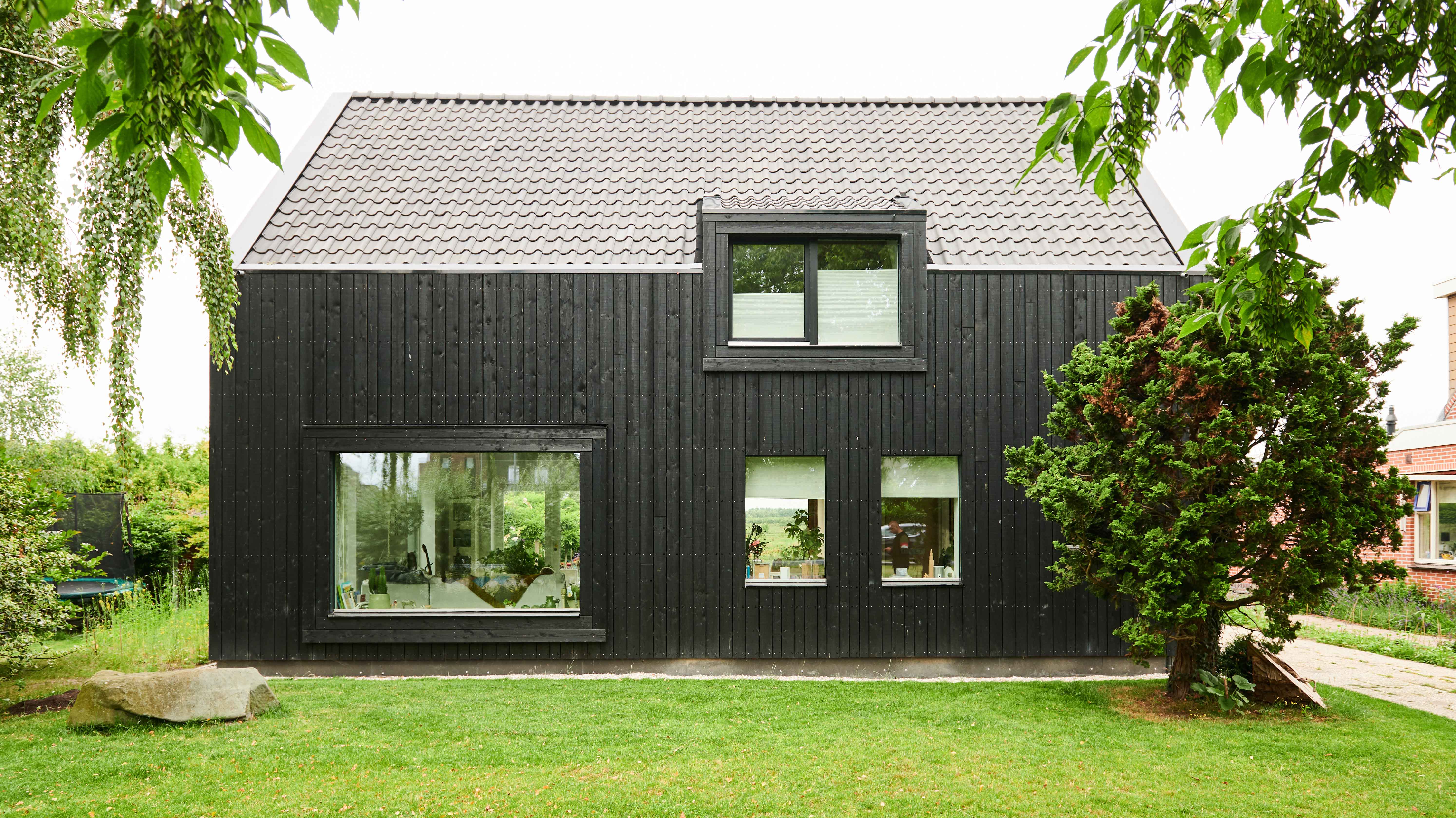 - Gevelbekleding: zwart houten delen
