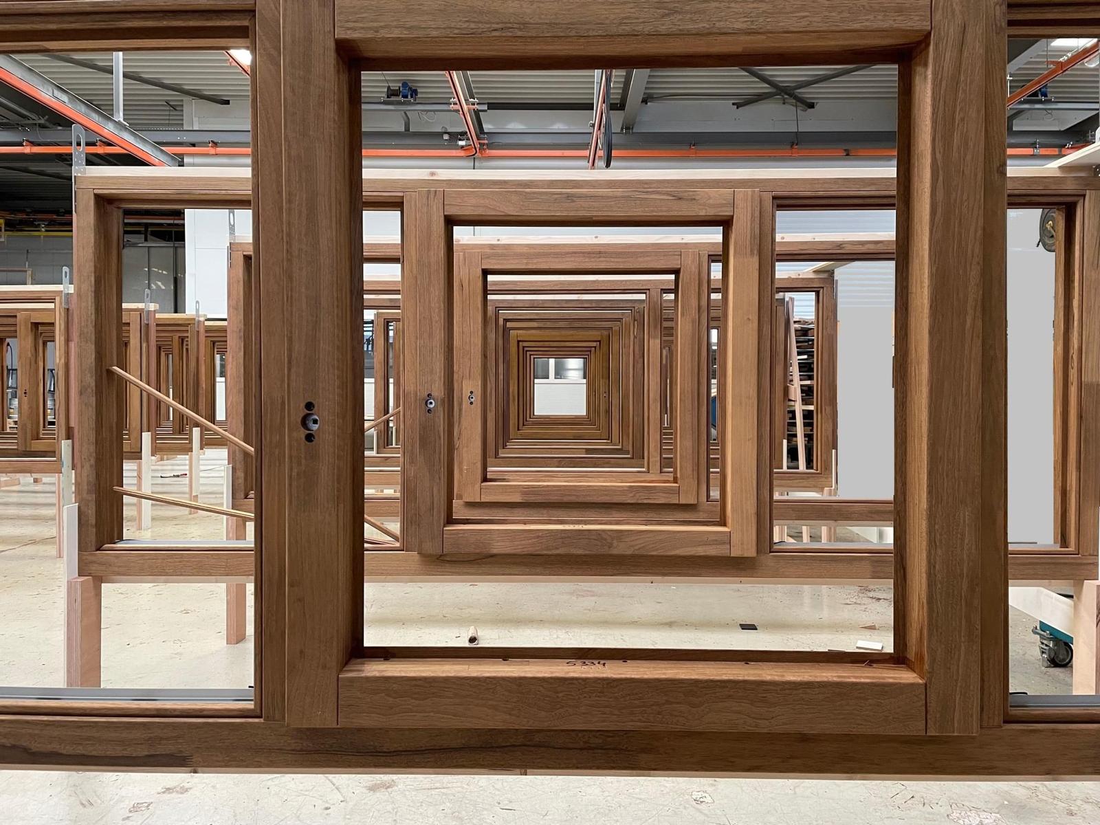 In de HSB-elementen zijn Fraké kozijnen toegepast, geleverd door Timmerfabriek BETI. Deze kozijnen zijn geheel onbehandeld en voorzien van HR+++ beglazing. Fraké is een duurzaam, stabiel hardhout dat afkomstig is uit verantwoord beheerde bossen. Door te kiezen voor dit materiaal sluit Deltawind naadloos aan bij de circulaire en biobased ambities van het project.