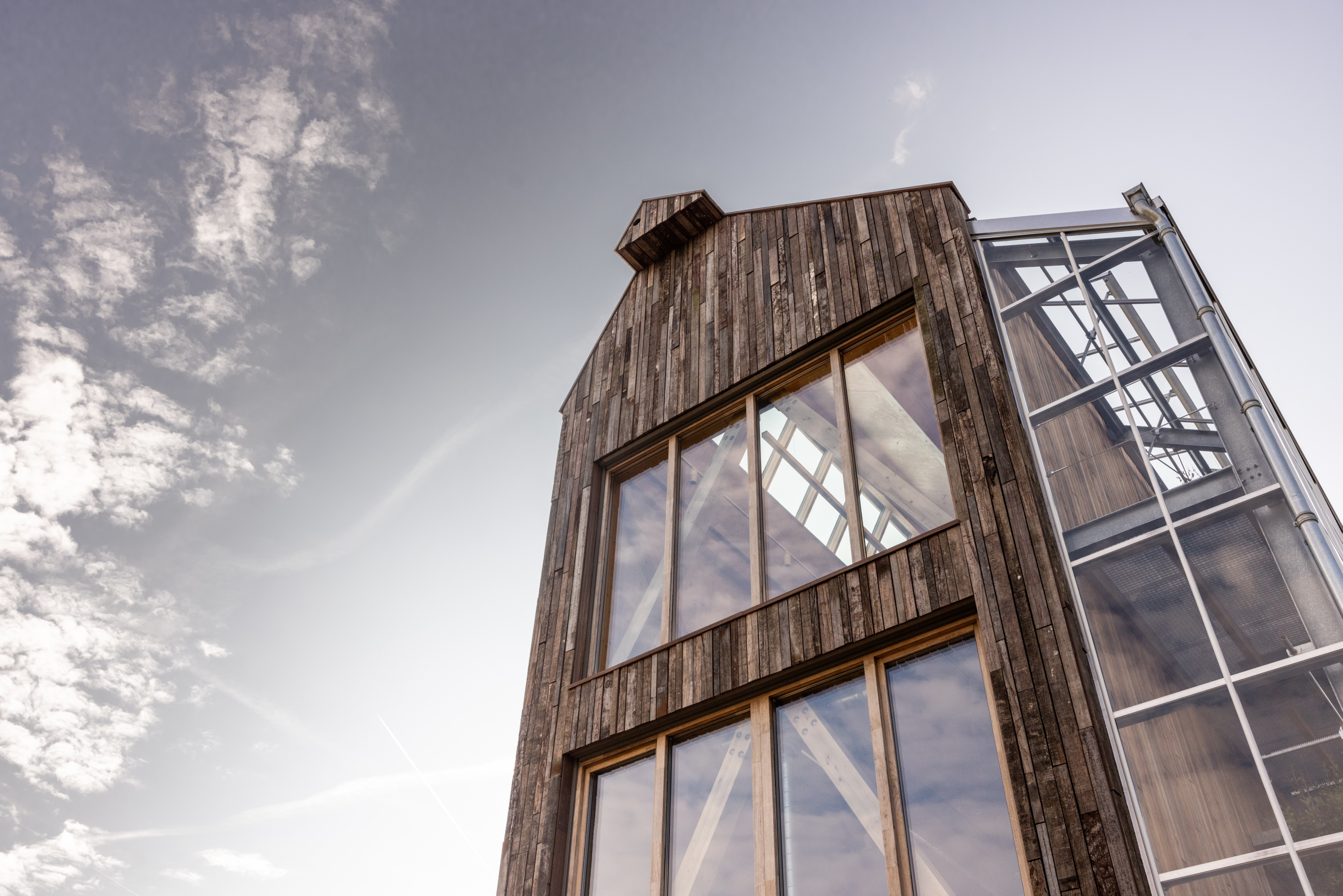 - Gebruikte houtsoorten: azobé (onderbouw, gevelbekleding van hergebruikte meerpalen), gelamineerd vuren (hoofddraagconstructie), CLT (vloeren en entreegebied), multiplan (binnenplaat HSB-gevels), lariks (kasgevel, afkomstig uit bossen van Staatsbosbeheer), thermisch verduurzaamd fraké (kozijnen), vuren en beuken (interieur)