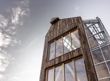 Visueel draagt het Fraké bovendien sterk bij aan de warme en natuurlijke uitstraling van het gebouw. Door het onbehandelde Fraké zal het hout op een egale manier vergrijzen, waardoor het opgaat in de hergebruikte Azobé gevelbekleding. Zo ontstaat een gevel die veroudert met karakter en perfect past bij de duurzame identiteit van Deltawind.