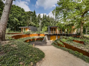 In het bosrijke gebied van de Utrechtse Heuvelrug is een woonhuis gerealiseerd dat volledig is afgestemd op de natuurlijke omgeving. Het ontwerp van ORGA Architect, in samenwerking met Studio Nico Wissing, maakt optimaal gebruik van het glooiende terrein. Door het gebouw deels in de helling te plaatsen, vormt het huis een vanzelfsprekend onderdeel van het landschap.