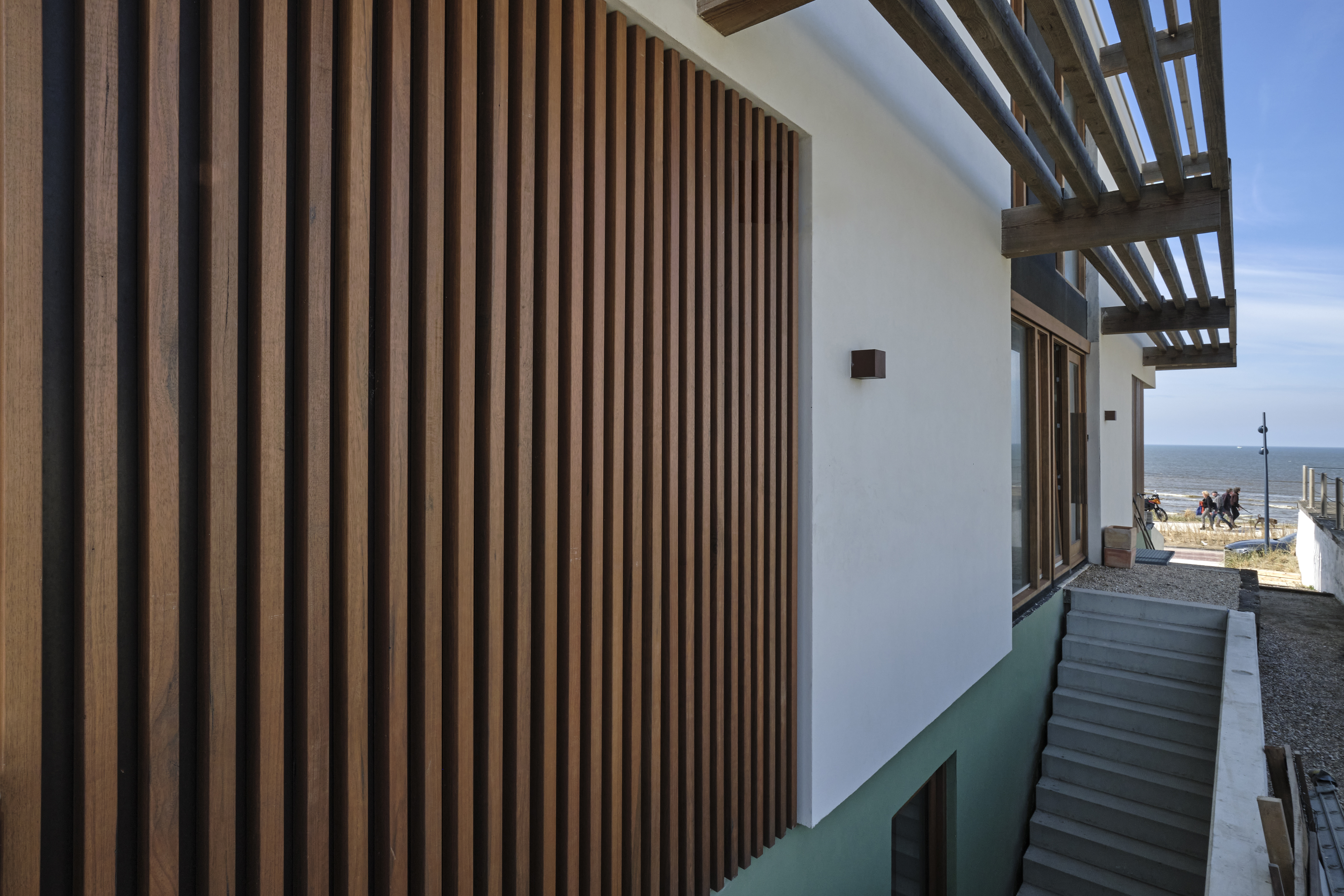 Ook in de gevels en in de kozijnen speelt hout een hoofdrol