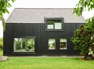 - Gevelbekleding: zwart houten delen