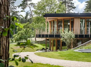 In het bosrijke gebied van de Utrechtse Heuvelrug is een woonhuis gerealiseerd dat volledig is afgestemd op de natuurlijke omgeving. Het ontwerp van ORGA Architect, in samenwerking met Studio Nico Wissing, maakt optimaal gebruik van het glooiende terrein. Door het gebouw deels in de helling te plaatsen, vormt het huis een vanzelfsprekend onderdeel van het landschap.