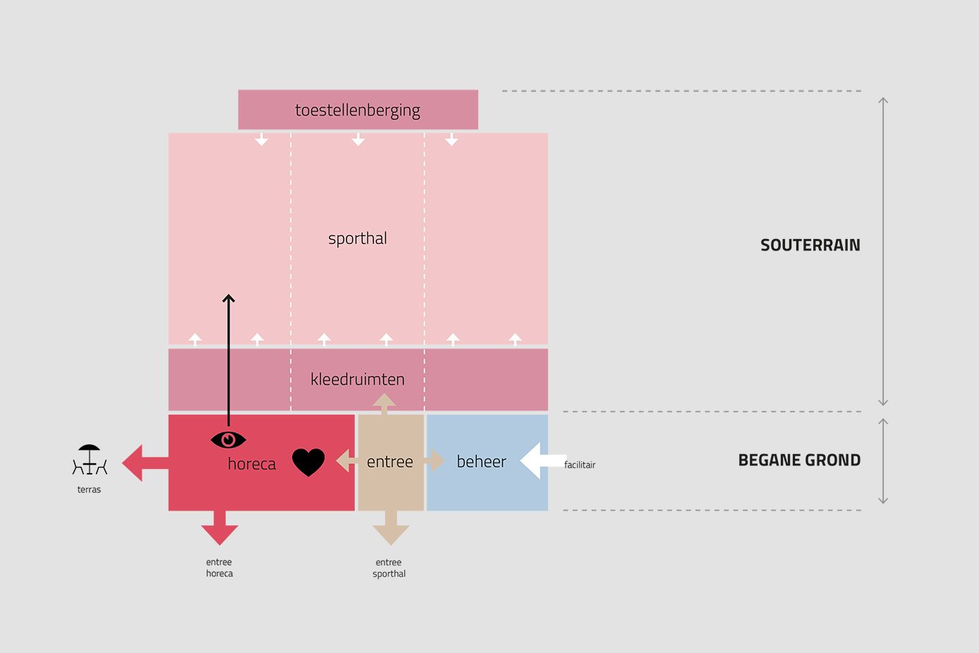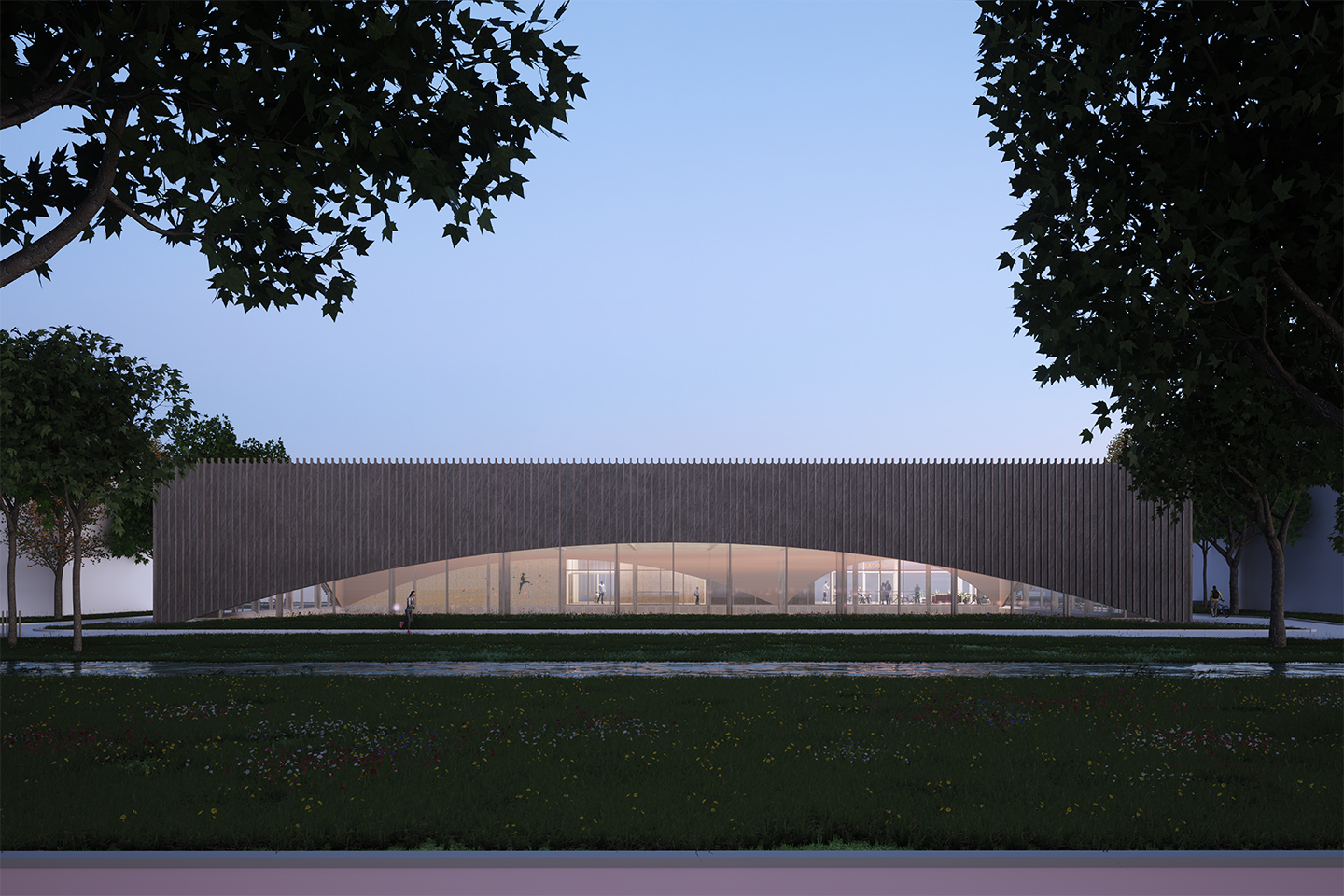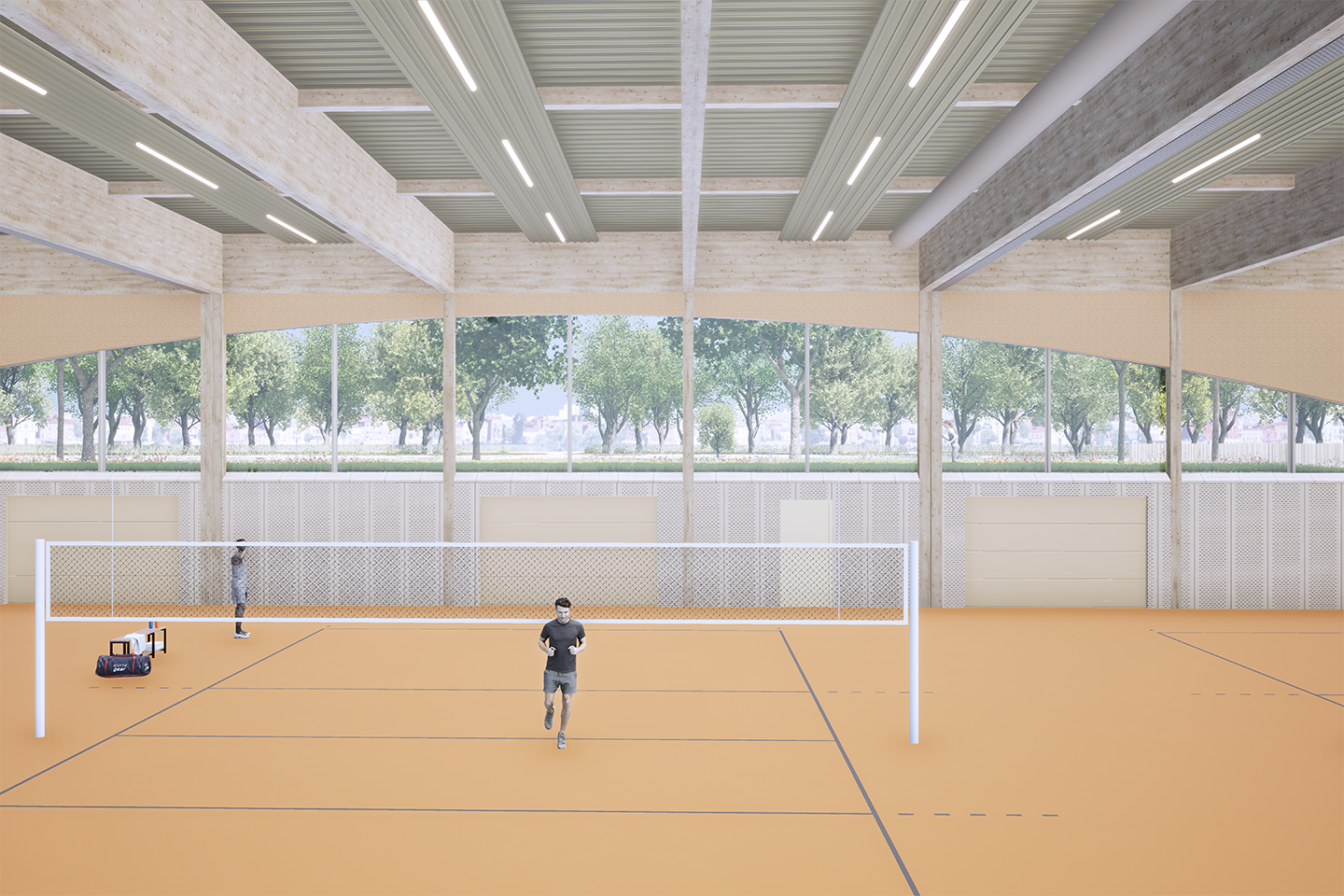 De sporthal wordt grotendeels in hout uitgevoerd. De hoofddraagconstructie, wanden en begane grondvloer van de sporthal zijn uitgevoerd in Cross Laminated Timber (CLT). Daarnaast worden de gevels en binnenwanden grotendeels in hout gebouwd.