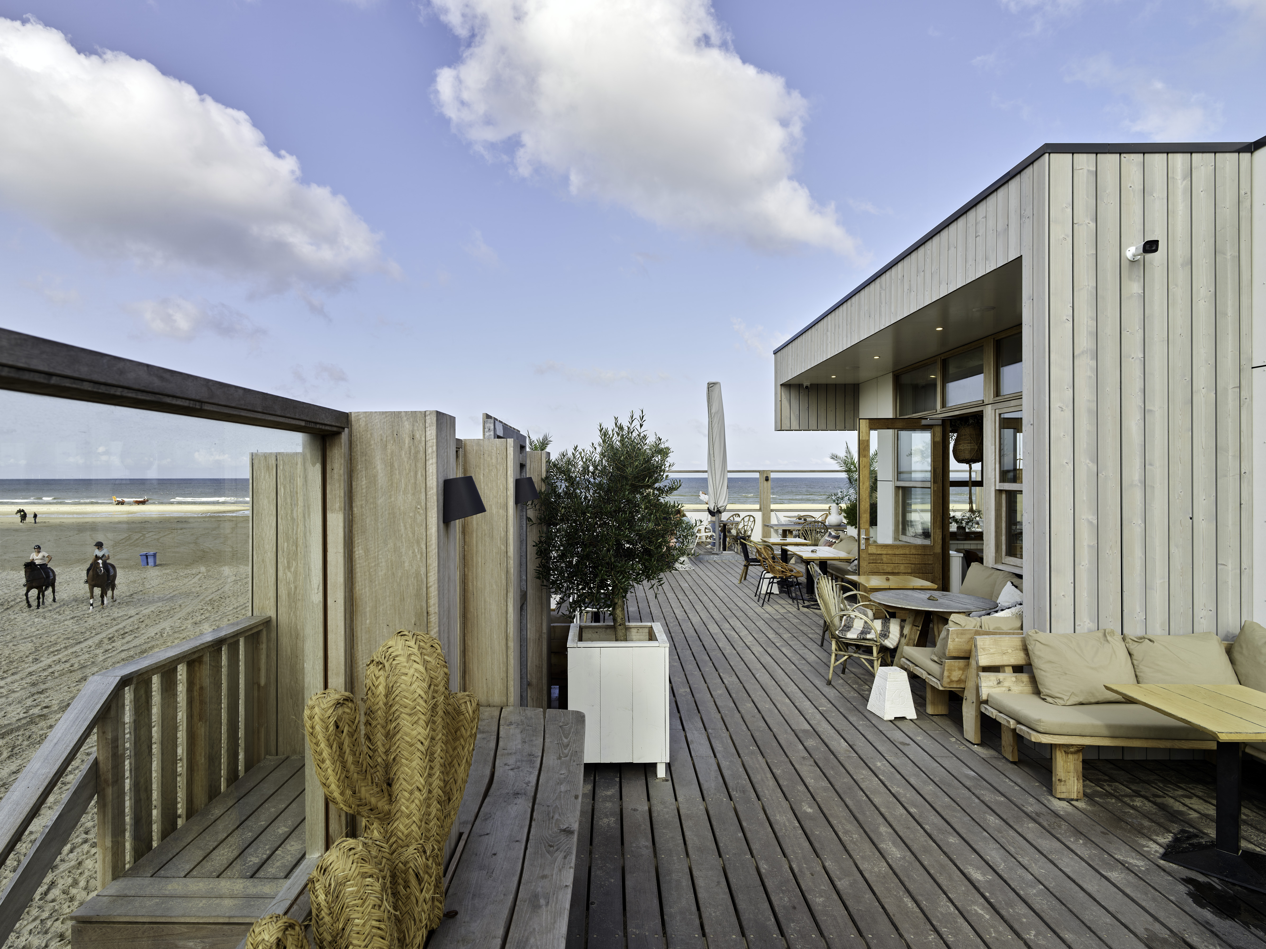 “Al sinds 2004 schrijf ik het hout van Platowood voor, het is een heel mooi materiaal. Ik vind het belangrijk dat hout duurzaam is, afkomstig uit gecertificeerde bossen. Voor het strandpaviljoen was hout een logische keuze gezien de natuurlijke uitstraling van het materiaal, passend bij de omgeving.”