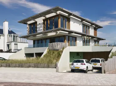 Aan de boulevard van Zandvoort verrees een opvallende strandvilla, ontworpen door Springtij Architecten. De woning is volledig nieuw gebouwd op de plek van een bestaande woning. Zichtlijnen vormen de rode draad in het ontwerp: vanuit elk punt in de woning is zicht op zee.