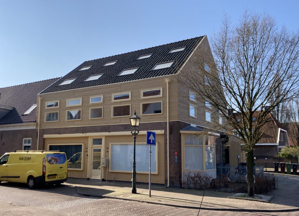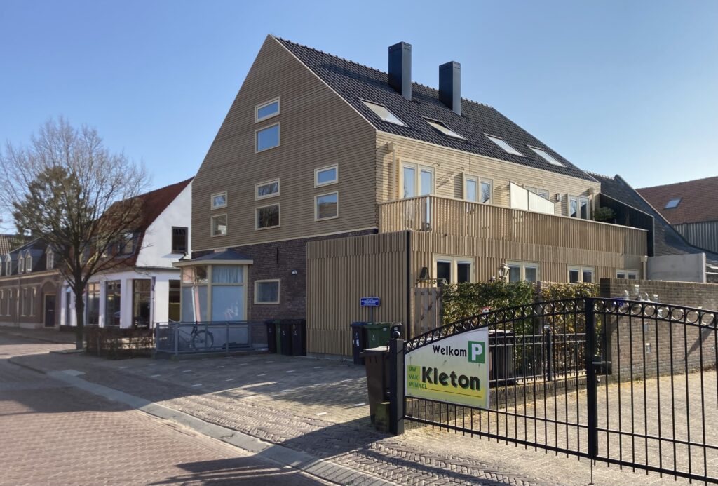 Een winkel met bovengelegen woning in het centrum van Amerongen moest worden her-ontwikkeld tot 4 appartementen, de appartementen moesten hierbij gaan voldoen aan de op dat moment geldende regelgeving. De gevel, draagstructuur en het interieur van de verdieping is in zijn geheel verwijderd, daarna is er een gehele nieuwe verdieping met nieuwe plattegronden en gevels gerealiseerd. Op de begane grond zijn de woningen naar achteren uitgebouwd. De houten kapconstructie is, vanwege zijn monumentale kwaliteiten, behouden. Door de verschillende ritmes en richting van de houten bekleding is er een mooi en levendig gevelbeeld ontstaan. Door de metselwerkgevels te vervangen door een houtskeletbouwconstructie met houten buitenbekleding is er veel ruimte gewonnen.